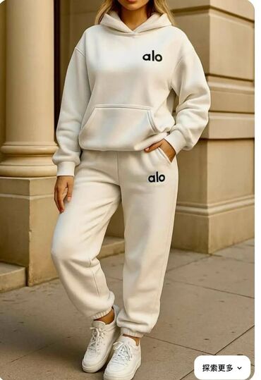 - Gornji deo: klasična dukserica sa kapuljačom, kengur džepom i elastičnim ranflama na rukavima i struku. Diskretan “alo” logo na levoj strani grudi.