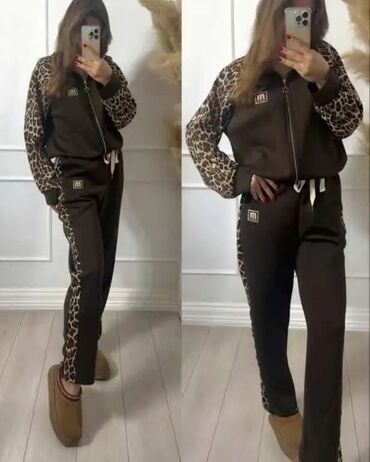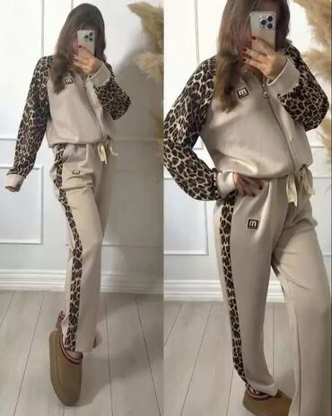 - Dizajn: jednobojna osnova sa leopard print rukavima i bočnim prugama na pantalonama