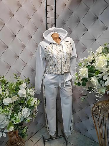 - Dizajn: paneli sa monogram/letter printom na prednjem delu duksa i po bočnim stranama nogavica; dekorativni paspuli duž raglan rukava i nogavica.