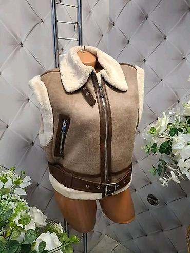 Ženski prsluk-jakna sa krznom (shearling stil)
