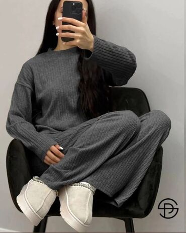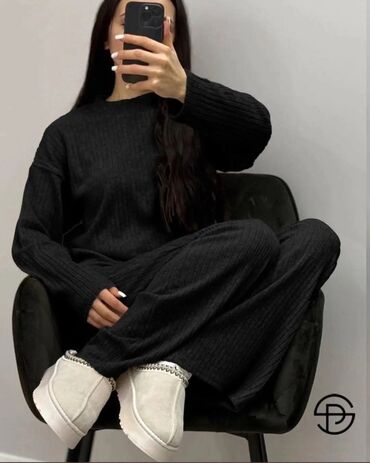 Na sniženju Ženski rebrasti komplet – dukser i široke pantalone