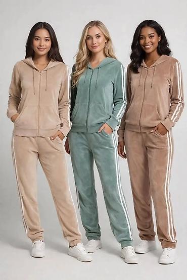 Ženski komplet trenerke od velura – bluza s kapuljačom i donji deo -