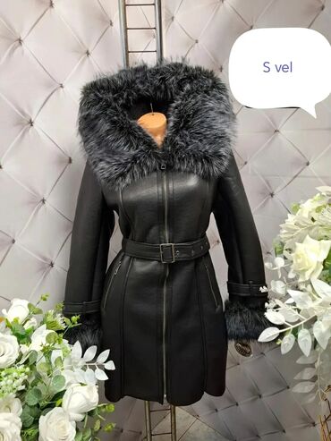 - Model 1: crni kaput od eko kože sa velikiim krznenim okovratnikom i krznom na manžetnama u sivoj nijansi. Prednji rajsferšlus po celoj dužini, pojas sa kopčom za strukiranje, dva vertikalna zip džepa. Dužina do iznad kolena. Oznaka veličine: S.