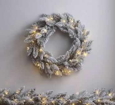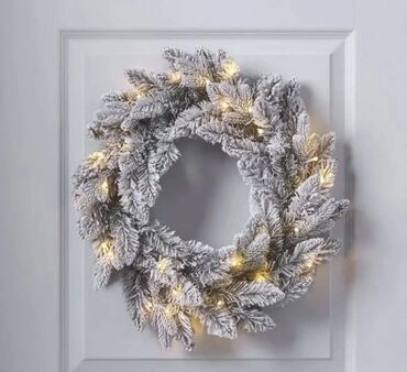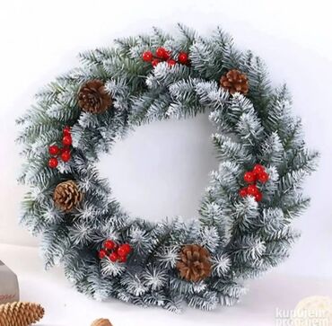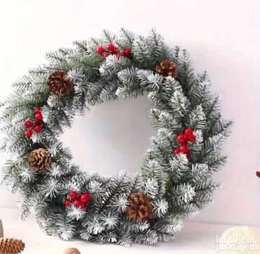 Napomena: dostupne su dve vizuelne verzije – jedna sa bobicama i šišarkama, druga sa ugrađenim toplim LED svetlima i snežnim efektom. Dimenzije nisu naznačene na fotografijama.