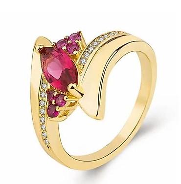 Ukrasni prsten sa crvenim kamenčićima - Dugačak, izdužen dizajn koji