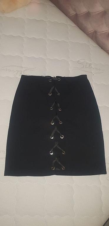 Crna mini suknja sa pertlanjem - Model: uska, visok struk, mini