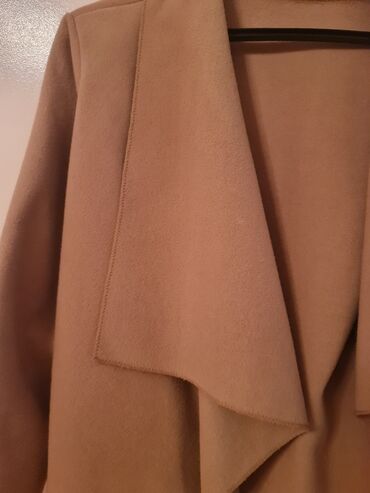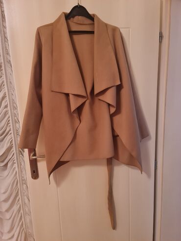 Ženski kraći kaput 13006 - Model: kratki kaput/oversize jakna sa pojasom za vezivanje u struku - Kroj: širi rameni deo, dugi rukavi, izražen rever, dužina do ispod kukova - Kopčanje: skriveno dugm...