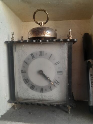 - Mehanizam: klasični mehanički (navijanje); sat i zvono na vrhu upućuju na funkciju budilnika.