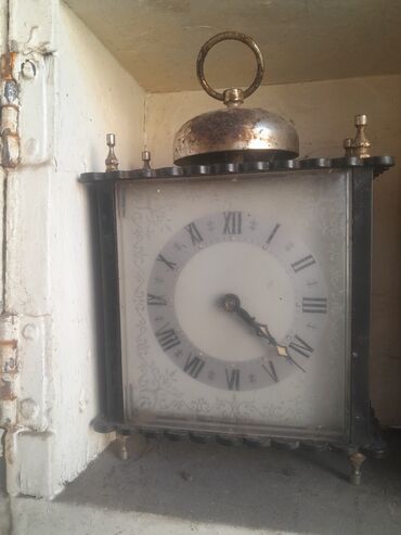 - Boje i materijali: crni okvir, mesingani/brončani detalji i zvono, svetli ciferblat sa sivim ornamentima.