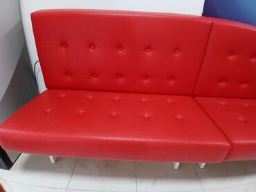 - Materijal: crveno tapaciranje u eko-koži sa dekorativnim dugmićima (kapitone), lako se održava i briše.