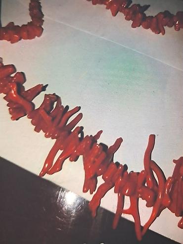 Ogrlica od crvenih koralnih perli (čips oblik) - Materijal: komadići crvenog korala nanizani u nizu čips perli - Boja: intenzivno crvena sa prirodnim šarama i varijacijama tona - Zatvaranje: metal...