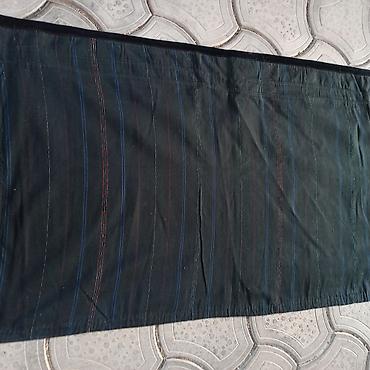 - Na fotografijama je prikazan i dugačak komad tamne, jednobojne tkanine sa diskretnim prugama, kao i svetla grublja platna i uzorak prugaste ručno tkane trake/pele.