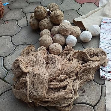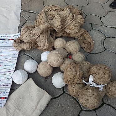 - Velika količina ručno namotanih klupka prirodnih vlakana u bež nijansama (lan ili konoplja), uz nekoliko klupka u beloj boji. Pogodno za tkanje, pletenje, heklanje, izradu dekorativnih i upotrebnih predmeta, makrame, užadi i rustičnih tekstilnih detalja.