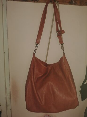 - Velika svakodnevna torba u boji konjaka: meka, široka forma (hobo stil); duži podesivi kaiš sa metalnim karikama; spoljašnji džep na sredini, zatvaranje na vrhu.