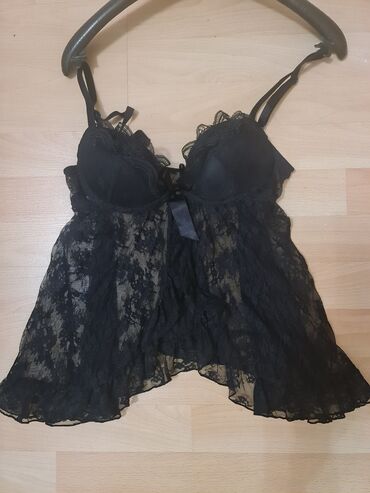 Ženska spavaćica/košuljica – Avant Première (AP) - Model: babydoll sa žičanim korpama - Veličina: 75A (označeno na etiketi) - Boja: smaragdno zelena sa crnim čipkastim detaljima - Materijali: laga...6 000 RSD