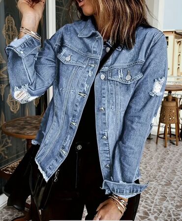 O trošku kupca4XL Moderna ženska teksas jakna u ispranoj svetloplavoj nijansi, savršena za opuštene i svakodnevne kombinacije. Jakna ima klasičan kroj sa dugmadima na prednjoj strani, dva džepa na grudima sa preklopom i dugmadima,Rukavi se završavaju manžetnama sa dugmadima. Karakteriše je izlizan efekat sa vidljivim oštećenjima i poderotinama, što doprinosi autentičnom, distressed izgledu. Donji rub jakne je neobrađen, sa rese. Idealna je za prelazne periode ili kao sloj u hladnijim danima, lako se kombinuje sa raznim stilovima odeće.