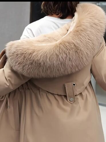 PlišŽenska zimska parka, boja peska, sa luksuznim krznenim okovratnikom i bogatom termo postavom.