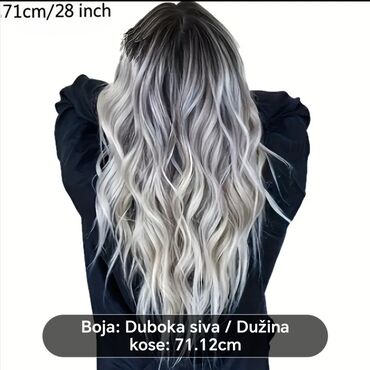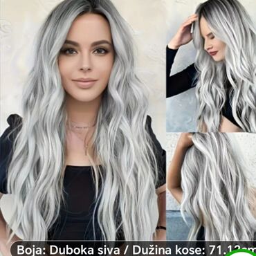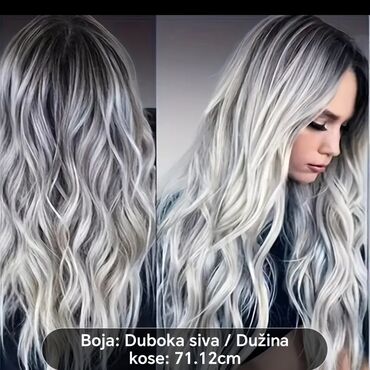 - Duboka siva: dužina 71,12 cm (28 inča). Tzv. “ash/ice” sivo sa prirodnim tamnijim korenom i mekim prelazom ka svetlijim, hladnim pramenovima. Talasasta tekstura sa voluminoznim loknama.