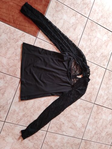 - Bluza: crna majica sa dugim čipkastim rukavima. Jedan rukav i deo gornjeg prednjeg/back dela izvedeni od prozirne čipke, asimetričan romantičan izgled. Mekana, rastegljiva tkanina tela bluze za prijatan osećaj na koži.