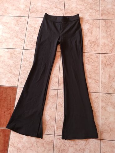 - Pantalone: crne, elastičan struk bez kopčanja, uske kroz butine sa blagim zvonom ka dole. Ravni porub, glatka silueta, prijanjajuće i udobne za celodnevno nošenje.