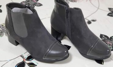 Crne ženske ankle čizme sa blok petom. - Materijal: mekana brušena koža (velur) spolja, glatka postava iznutra - Boja: crna - Model: do iznad članka, zatvaranje pozadi pomoću rajsferšlusa sa kožno...