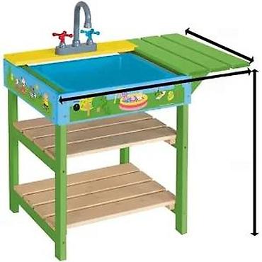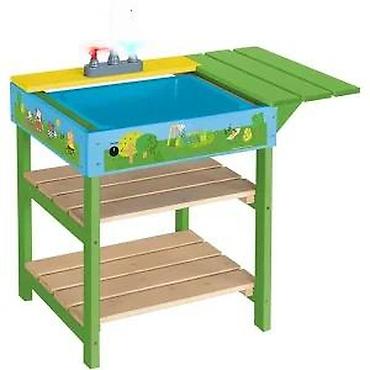 - Drvena radna stanica za igru napolju ili u kući, idealna za igru vodom, peskom, zemljom i kuvanje blata.