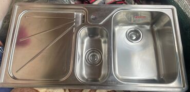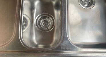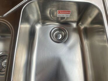 NovoKuhinjski sudopera FRANKE od nerđajućeg čelika, sa ocenjivačem i dodatnom pomoćnom kadom.