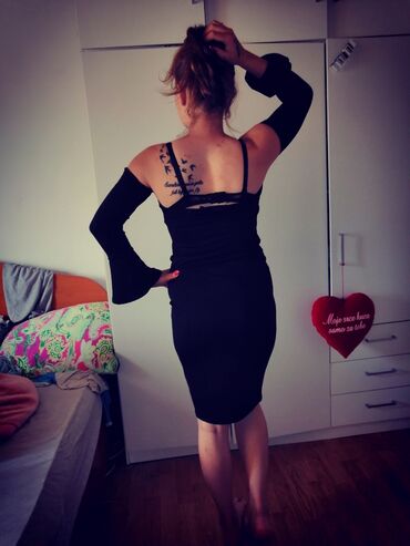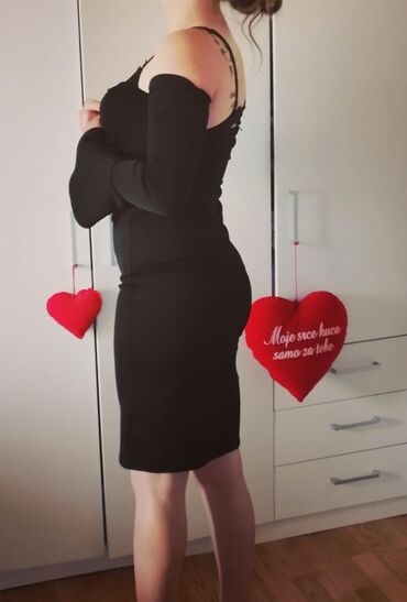 Dve večernje haljine – elegantne i efektne, idealne za specijalne prilike: 1) Crna mini haljina,M vel - Kroj: pripijena silueta, mini dužina. - Izrez: ključni prorez na prednjem delu grudnog koša....