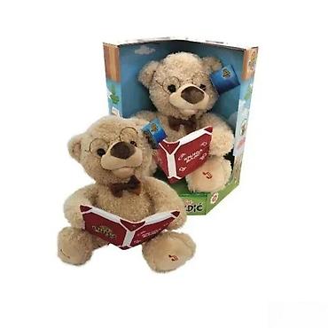 - Funkcije: drže ilustrovanu „knjigu“ i govore/pevaju (muzičke note i ikone na igračkama i pakovanju). Aktivacija dugmetom/pritiskom – igračka pomera usta i recituje/peva kratke stihove i dečje pesmice.