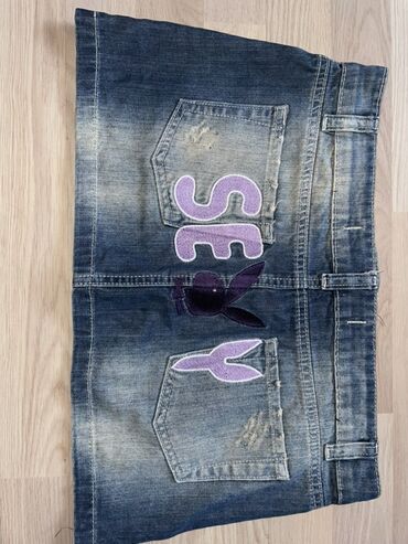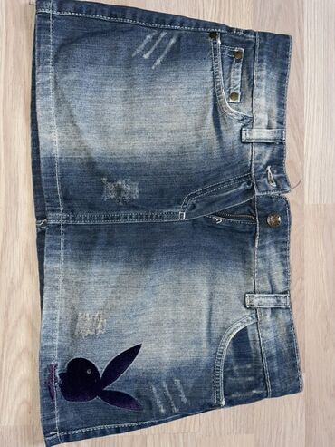 Ženska teksas suknja – distressed stil NOVO neki M je u pitanju - Brend: Dilvin - Model: mini/iznad kolena, ravnog kroja - Materijal: klasični denim (pamuk) - Boja: tamniji indigo sa ispranim efekt...2 700 RSD
