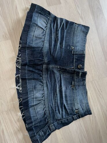 Ženska teksas suknja – distressed stil NOVO neki M je u pitanju - Brend: Dilvin - Model: mini/iznad kolena, ravnog kroja - Materijal: klasični denim (pamuk) - Boja: tamniji indigo sa ispranim efekt...1 400 RSD