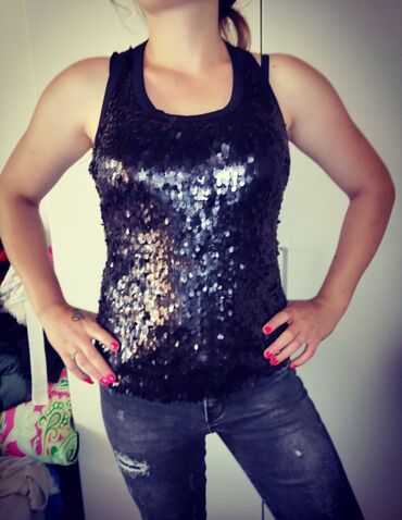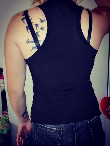Majica na brtele, napred ima deo od sitne mrežice, veličina S, crna *Na više stvari popust*