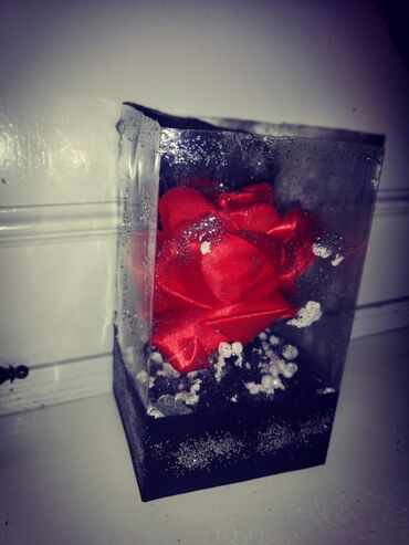 Ukrasna božićna maketa „zimskog grada” sa rasvetom - Dekorativna maketa na postolju, ručno rađena u beloj i zlatnoj boji, sa efektom snega i šljokica. - Prednji niz čine kućice različitih oblika i...