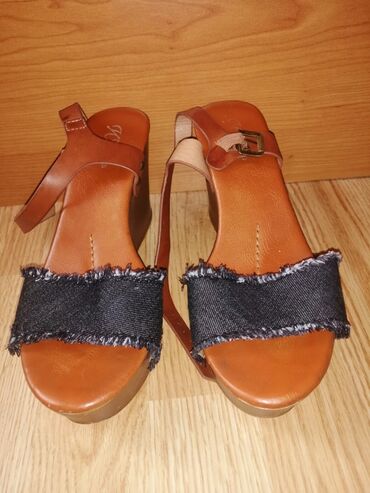 Potpuno nove sandale, broj 37. Veštački materijal. Visina štikle 8 cm.