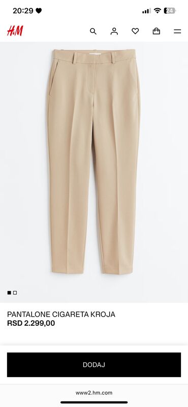 O trošku kupcaBež cigareta elegantne pantalone sa visokim strukom.
