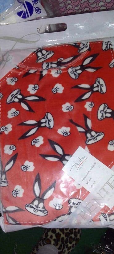 Dečija pidžama – komplet košulja i pantalone - Veličina: 6 (naznačeno na slici) - Cena: 300 RSD (naznačeno na slici) - Materijal: lagana, meka tkanina prijatna za kožu - Dizajn: belo sa celopreko ...
