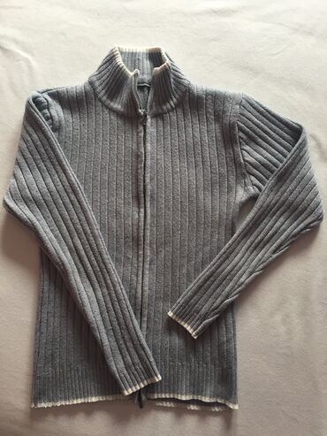 Sivi pleteni kardigan sa kratkim rukavima i pojasom. - Model sa širokim rebrastim šalom-kragnom - Jedno dugme za kopčanje napred + dodatni pleteni pojas za vezivanje u struku - Rebrasti žlebasti...