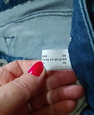 Farmerke – veličina S, super očuvane. - Svetloplavi teksas sa ispranim efektom sprijeda i pozadi - Uski kroj (skinny), srednji struk - Kopčanje na četiri ukrasna metalna dugmeta - Džepovi: klasičn...