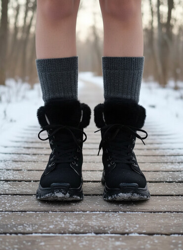 Ženske zimske gležnjače – urbani treking stil od 36 do 41 - Model: gležnjače sa pertlama i metalnim kukačama za brzo i sigurno zatezanje - Gornjište: Eko koža sa blagom teksturom; boje – crna, bež ...