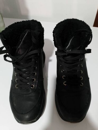 Olang crne ženske čizme za sneg sa debelim đonom i pertlama. Gornjište je izrađeno od kombinacije materijala, što obezbeđuje udobnost i zaštitu u zimskim uslovima. Unutrašnjost je postavljena mekan...Cipele 39 br. 1000din