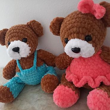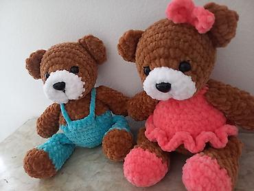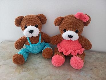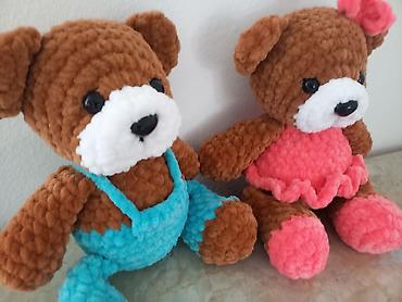 Ručno pleteni plišani medvedići – par - Materijal: mekana, plišana