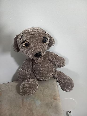 - Mekana plišana igračka u obliku psića, u sivo-braon boji