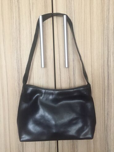Crna torba sa dugim kaišem preko ramena i ručkama za nošenje u ruci