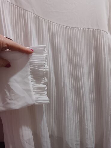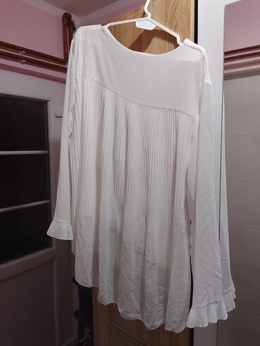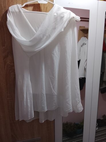 Drugi dekorŽenska bluzа/tunika u beloj boji, lagano providna i lepršava, sa dugim rukavima.