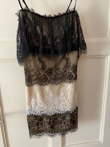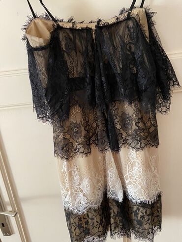 - Dizajn: slojevita čipka u više horizontalnih traka – crna, bež-nude podloga i bela čipka; bogati floralni motivi; resice na ivicama čipke