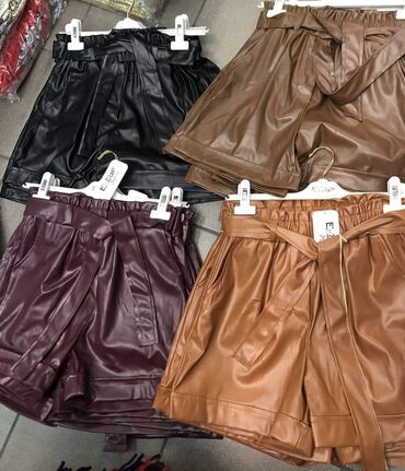 💥Ženske šorts pantalone od eko-kože sa čipkanim porubom Cena 2150