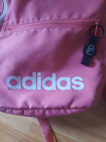 - Klasičan gradski/školski ranac u roze boji sa belim adidas logotipom napred