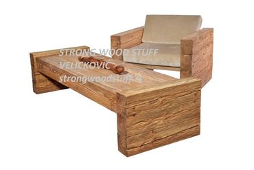 Industrijski klupe/klub stočići – metal + masivno drvo -