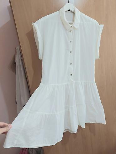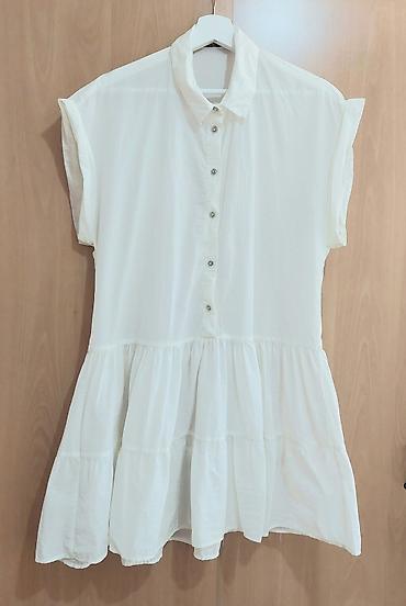 Bela košulja-haljina sa volanima - Kroj: opuštena A-silueta, mini