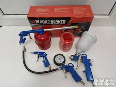 BLACK&DECKER Petodelni Set za Kompresor - Kvalitet i PouzdanostOpis proizvoda: Novi i veoma kvalitetan BLACK&DECKER set za kompresor (5 u 1) sadrži sve što vam je potrebno za efikasan rad i održavanje vaših vozila i alata. Ovaj set je savršen izbor za sve ljubitelje uradi sam projekata, kao i za profesionalce koji traže pouzdan i izdržljiv alat. Set sadrži: Usisna posudaPištolj za prskanje sa posudom za tečnostNastavak za pumpanje guma sa manometromSpiralno crevoPištolj za izduvavanjeCena: 30€ Kontakt: Za više informacija i porudžbine, pozovite nas na od 7 ujutru do 21h uveče. Napomena: Robu šaljemo kurirskom službom, a plaćanje se vrši pouzećem. Nabavite svoj BLACK&DECKER set za kompresor i olakšajte sebi svaki posao! ID Oglasa: #